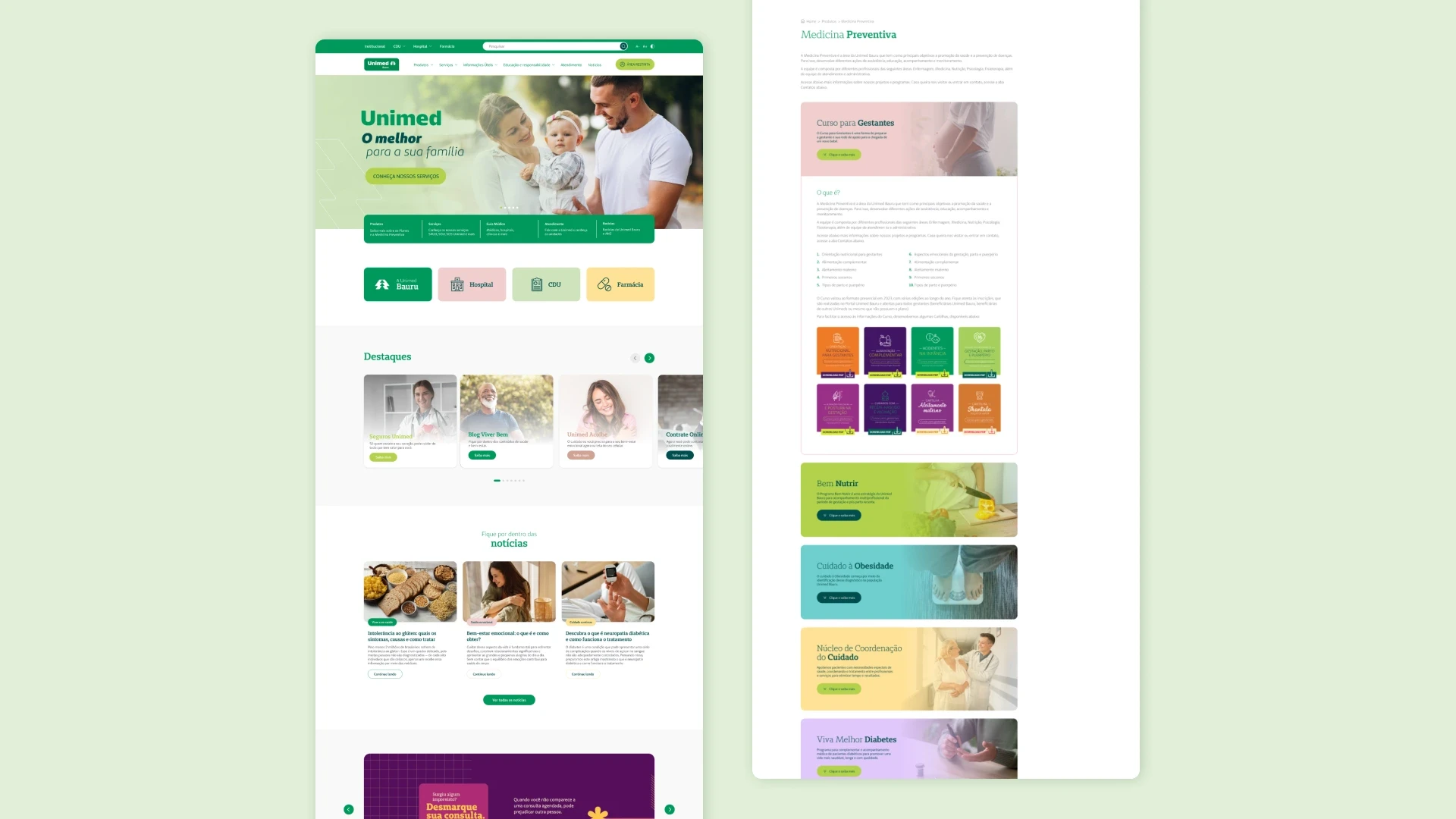 Para isso, foi adotada uma estética clean, com o uso de gradientes suaves, tipografia clara e uma organização cuidadosa das seções. A estrutura foi pensada para facilitar a navegação e tornar o acesso às informações mais rápido e eficiente.